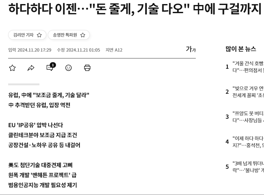 명심해야 한다. 중국은 이미 기술 대국, 선진국이다.