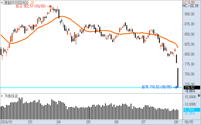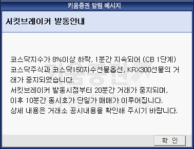 (속보) 코스닥 -8%이상 하락, 서킷브레이커 발동