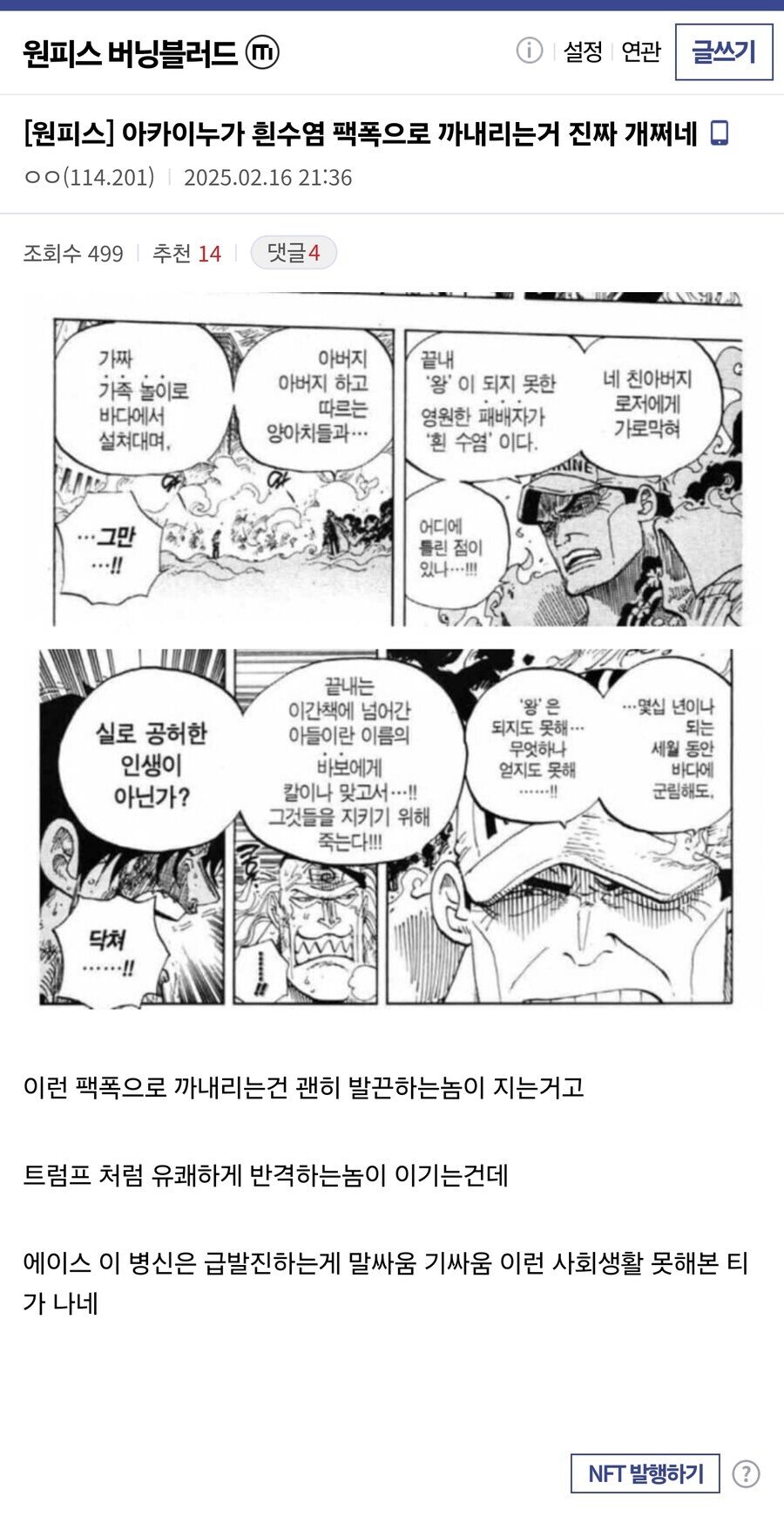 아카이누가 흰수염 팩폭으로 까내리는거 진짜 개쩌네 ㅎㄷㄷ