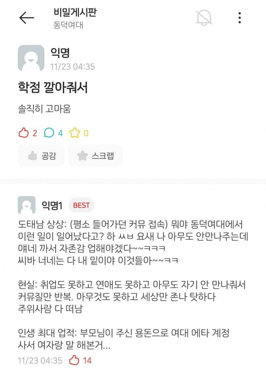 동덕여대 에타 가성비 도발