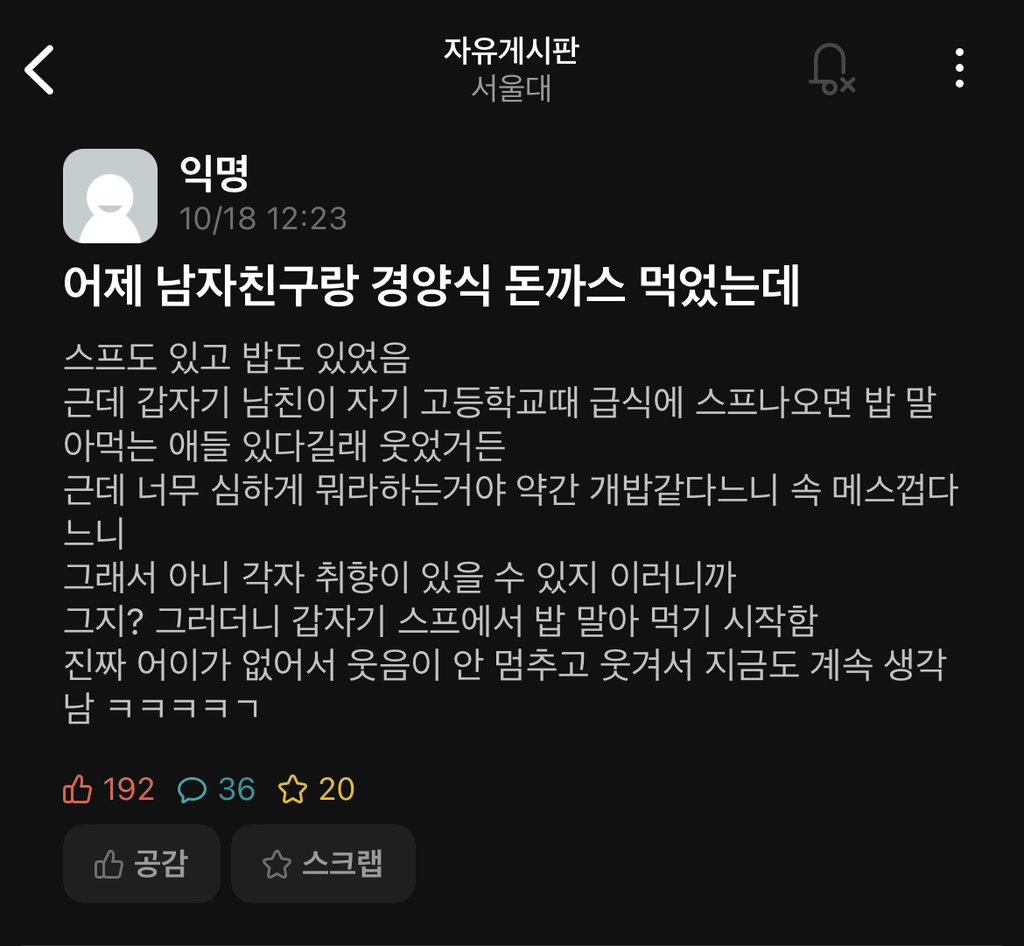 스프에 밥말아 먹는 애들 보면 메스껍다는 남친.JPG