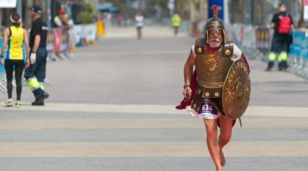 고대 그리스식 중무장 + 맨발로 마라톤 완주