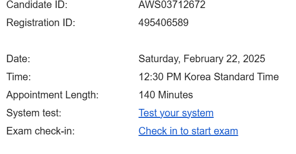 오늘 aws시험이여서 준비하고 있었는데 시험 신청 때 2시 시작으로 알고 2시에 하면되겠다 싶어서 했는데