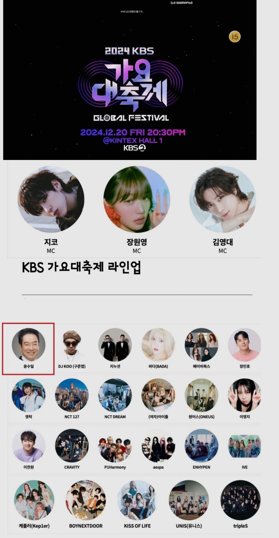 [오피셜] KBS 가요대축제 라인업