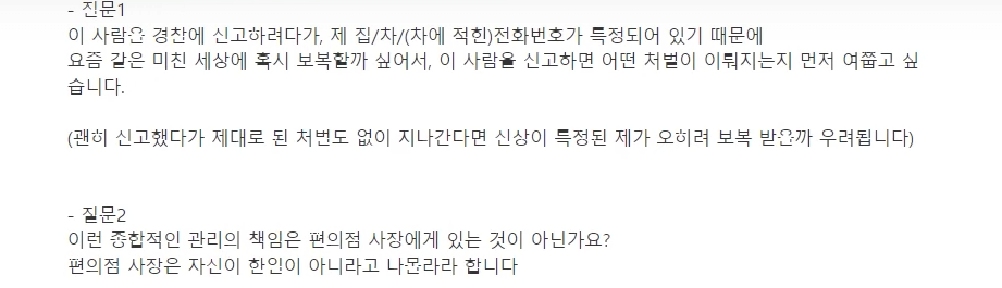편의점 사장한테 따지고 있는 차주