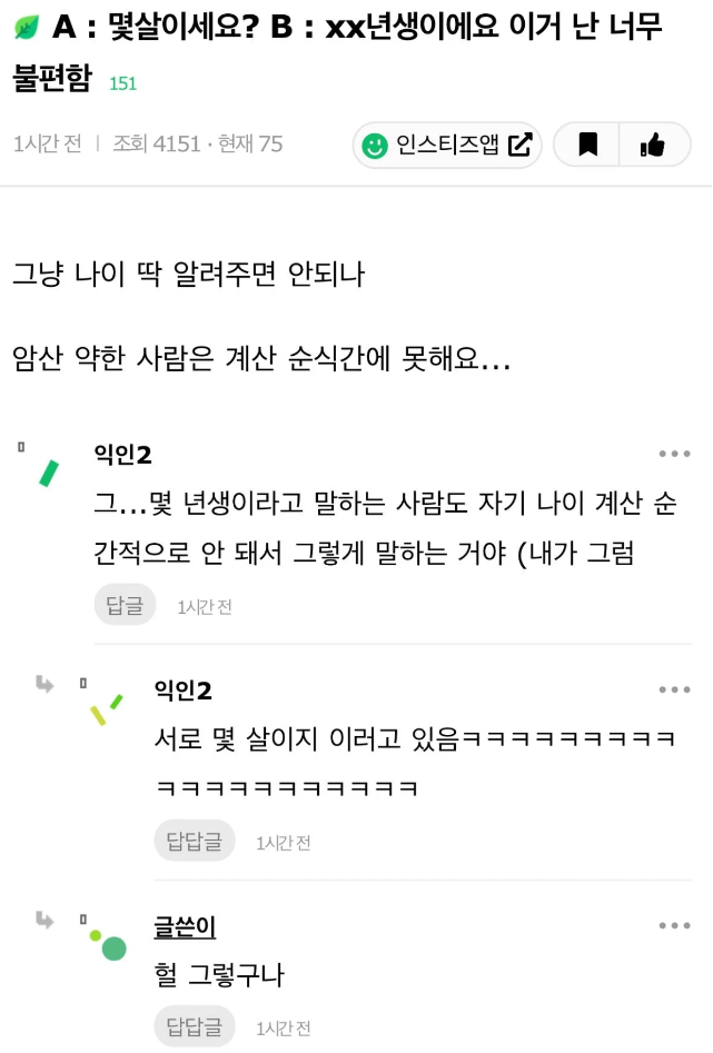 나이 물어봤을 때 이거 난 너무 불편함