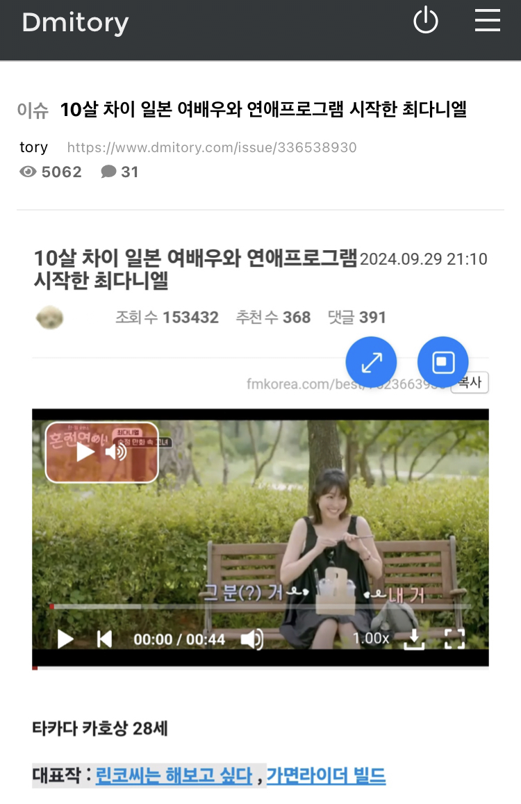 최다니엘 일본 여배우와 연애프로그램 여초 반응....