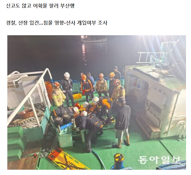 제주해양경찰서는 선원법(구조 의무) 위반 혐의로 어획물 운반선 선장 A 씨를 입건해 조사하고 있다고 29일 밝혔다.