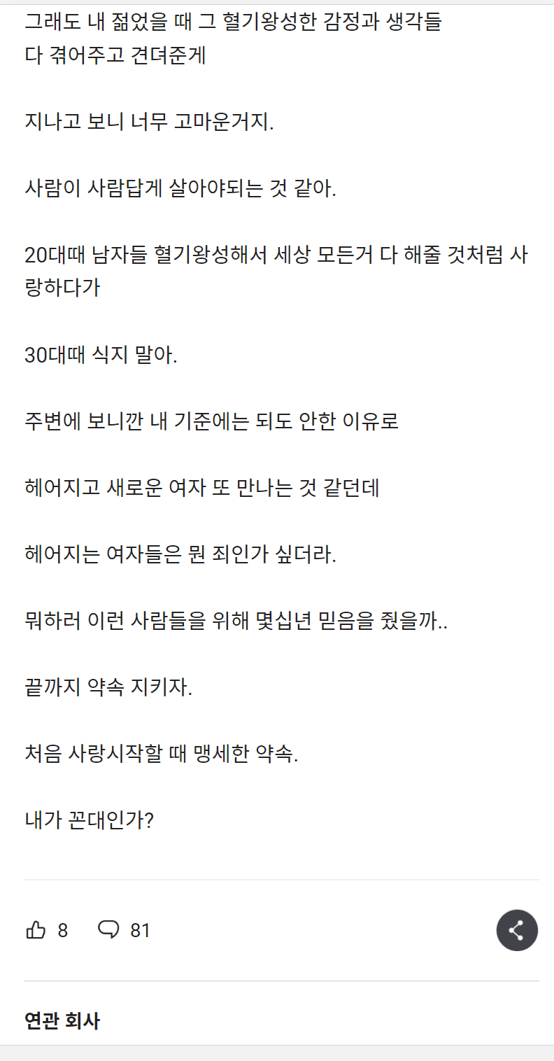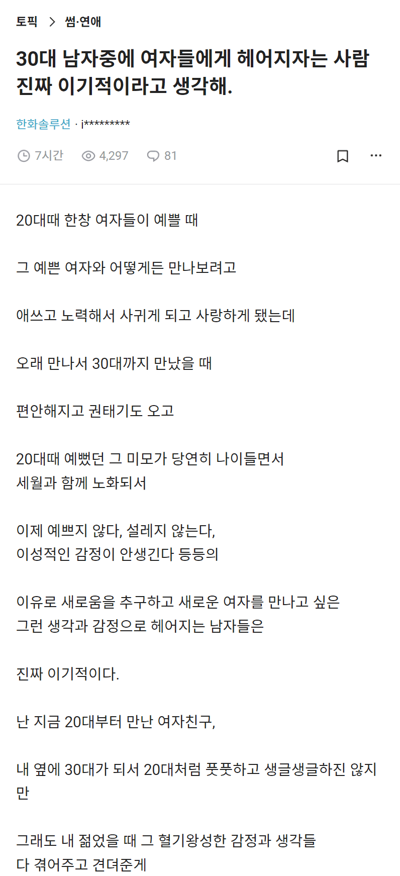 30대 남이 이별통보하는건 이기적이라는 블라인