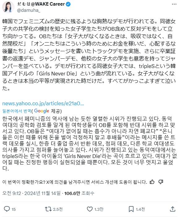 동덕사태 일본에도 전염 중