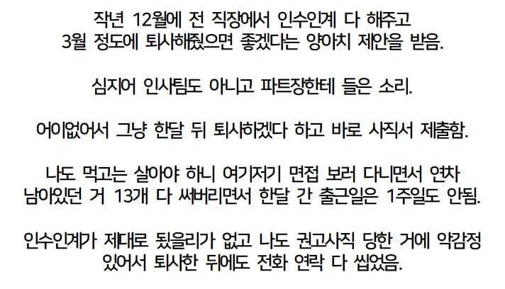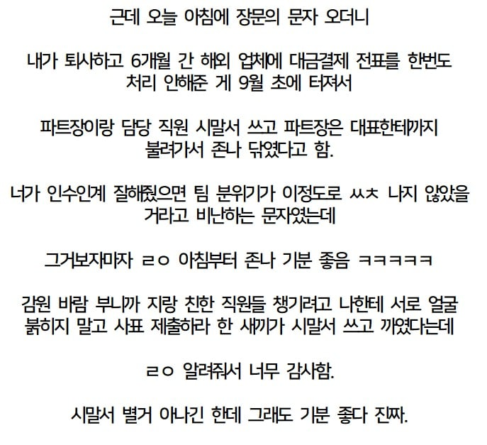 권고사직 당한지 반년 넘었는데 장문의 문자가 옴