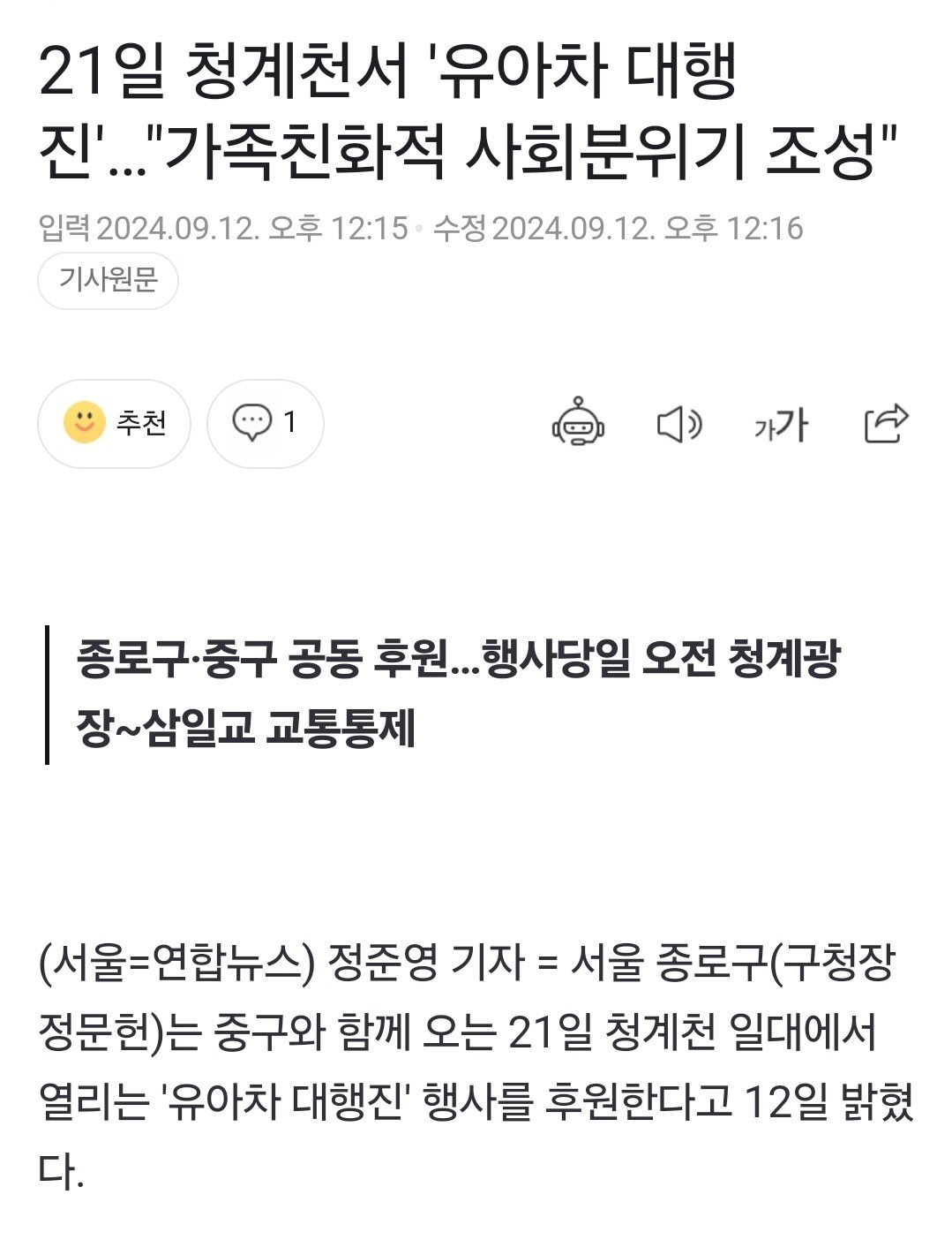 서울 청계천서 "유아차" 대행진 열린다 ㄷㄷㄷㄷㄷㄷ