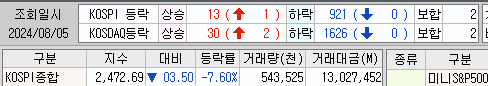[속보] 코스피 -8% 서킷브레이크 발동 나름 역대급 하락세