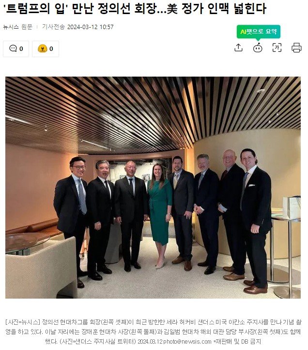 '트럼프의 입' 만난 정의선 회장…美 정가 인맥 넓힌다.gisa