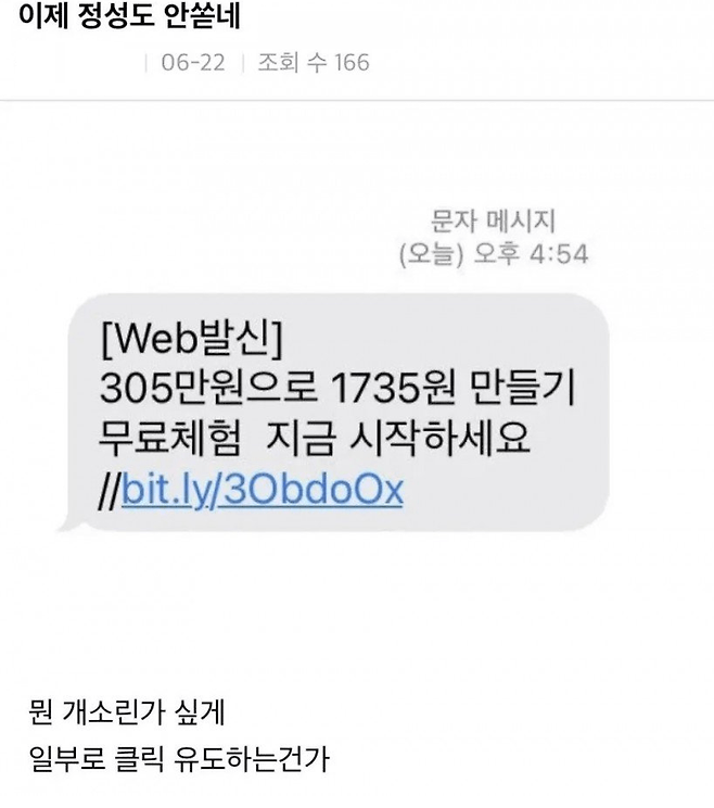 이젠 정성도 없는 피싱 문자