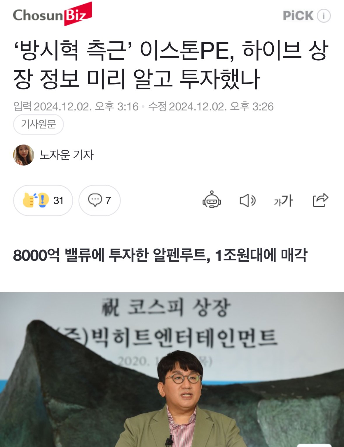 [격추재업] 안내 ‘방시혁 측근’ 이스톤PE, 하이브 상장 정보 미리 알고 투자했나