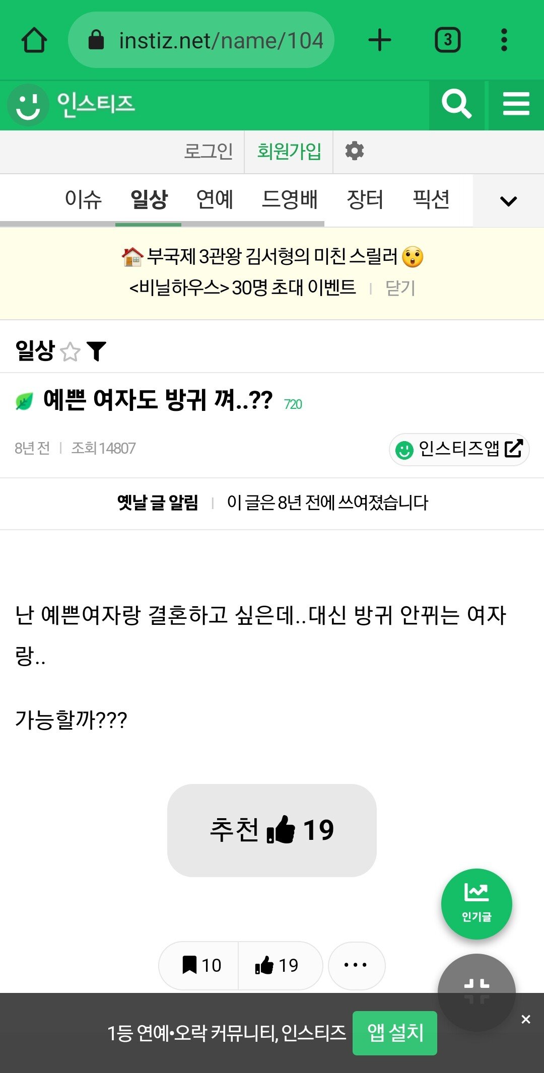 이상형이 얼굴 이쁘면서 방귀 안뀌는 여자인데 어디 없나요?