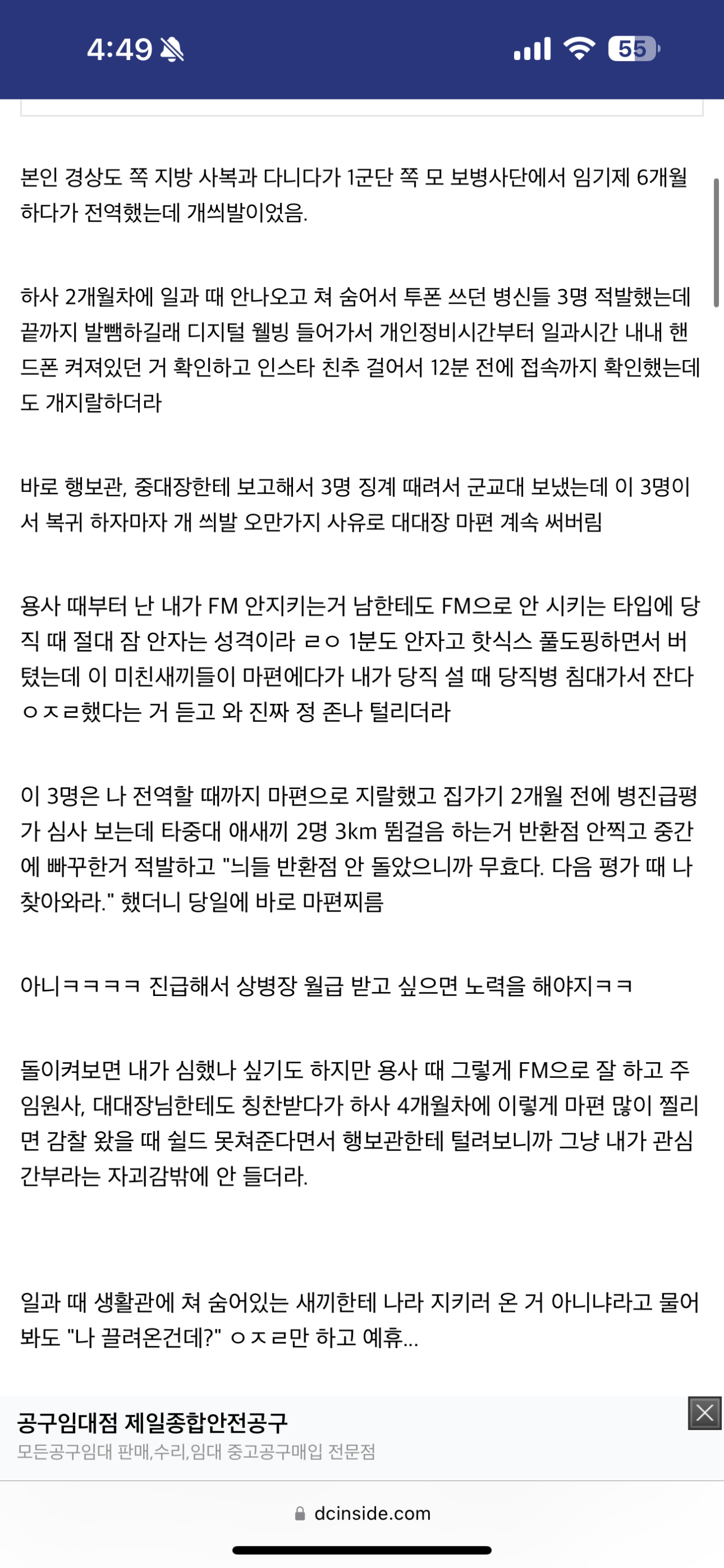 제외하면 말도 안듣고 부대 내에서 투폰, 도박 이런것도