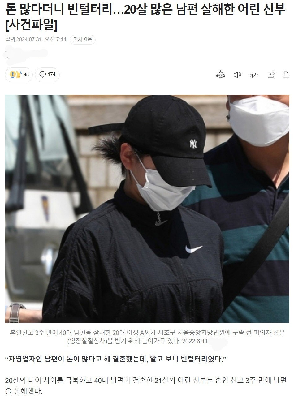 20살 많은 남편 살해한 어린 신부