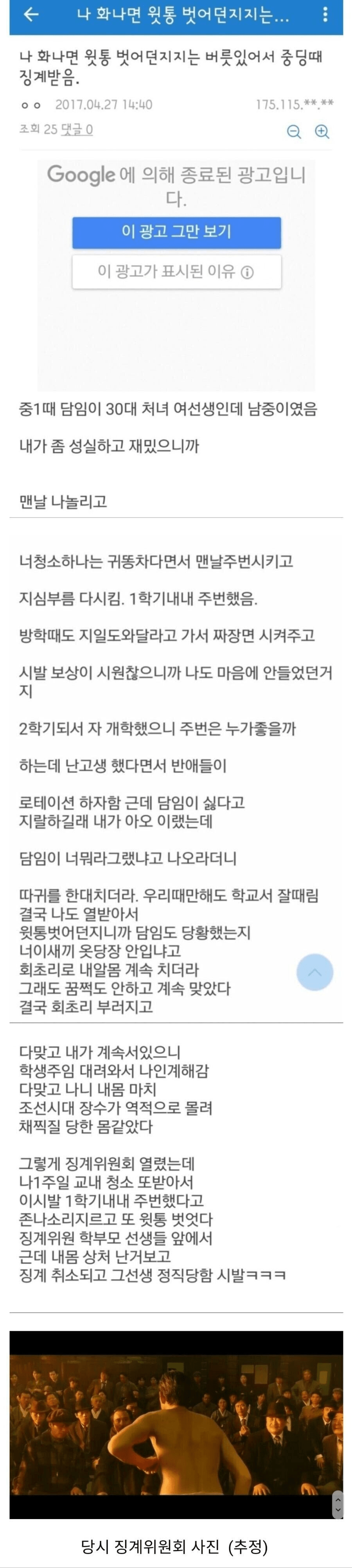 화나면 윗통 벗어재끼는 버릇있는 중딩