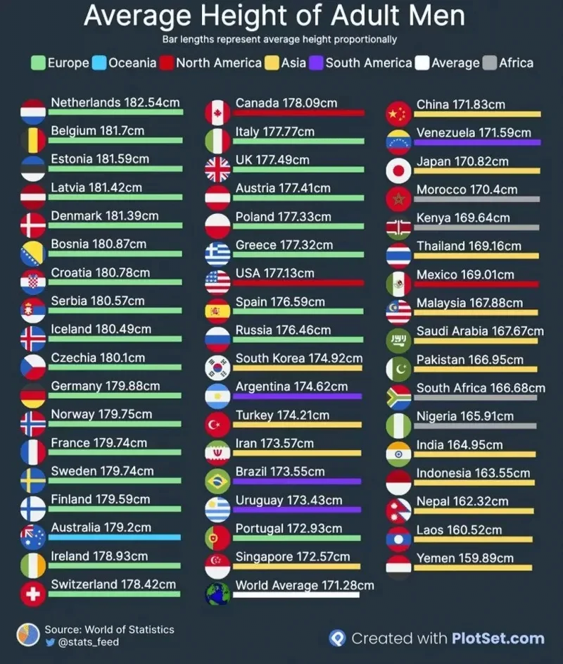 세계 각 나라별 평균 신장