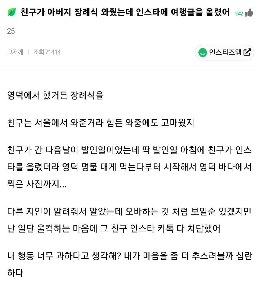 장례식 와준 친구 차단한 이유