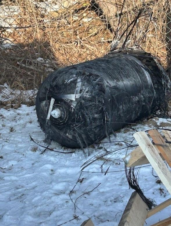 [서울=뉴시스] 2025년 2월 19일 폴란드 코모르니키의 한 가정집 마당에서 발견된 스페이스X의 팰컨 9 로켓 잔해.(사진=엑스 옛 트위터 갈무리) *재판매 및 DB 금지 /사진=뉴시스