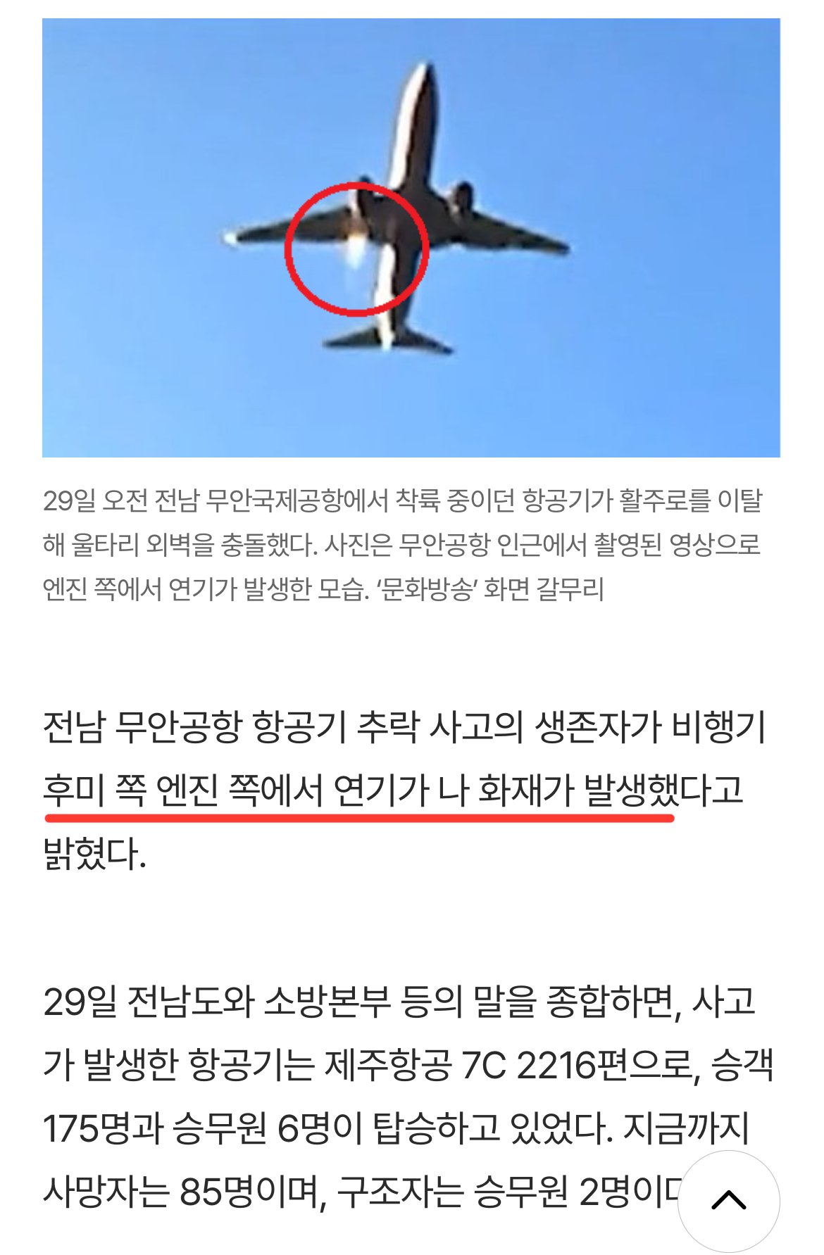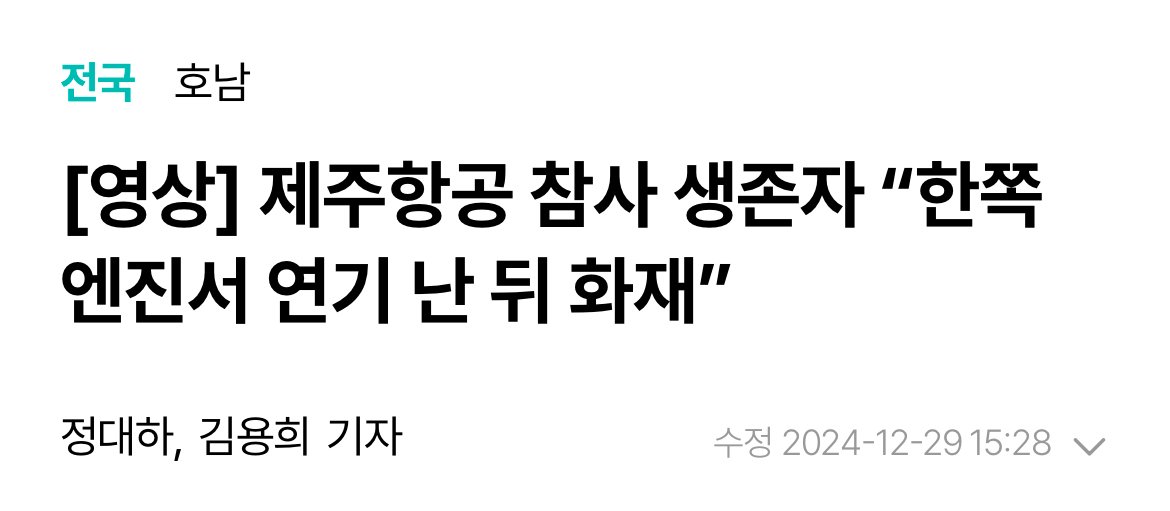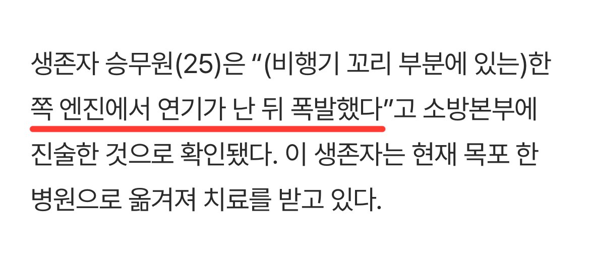 제주항공 참사 생존자 “한쪽 엔진서 연기 난 뒤 화재”
