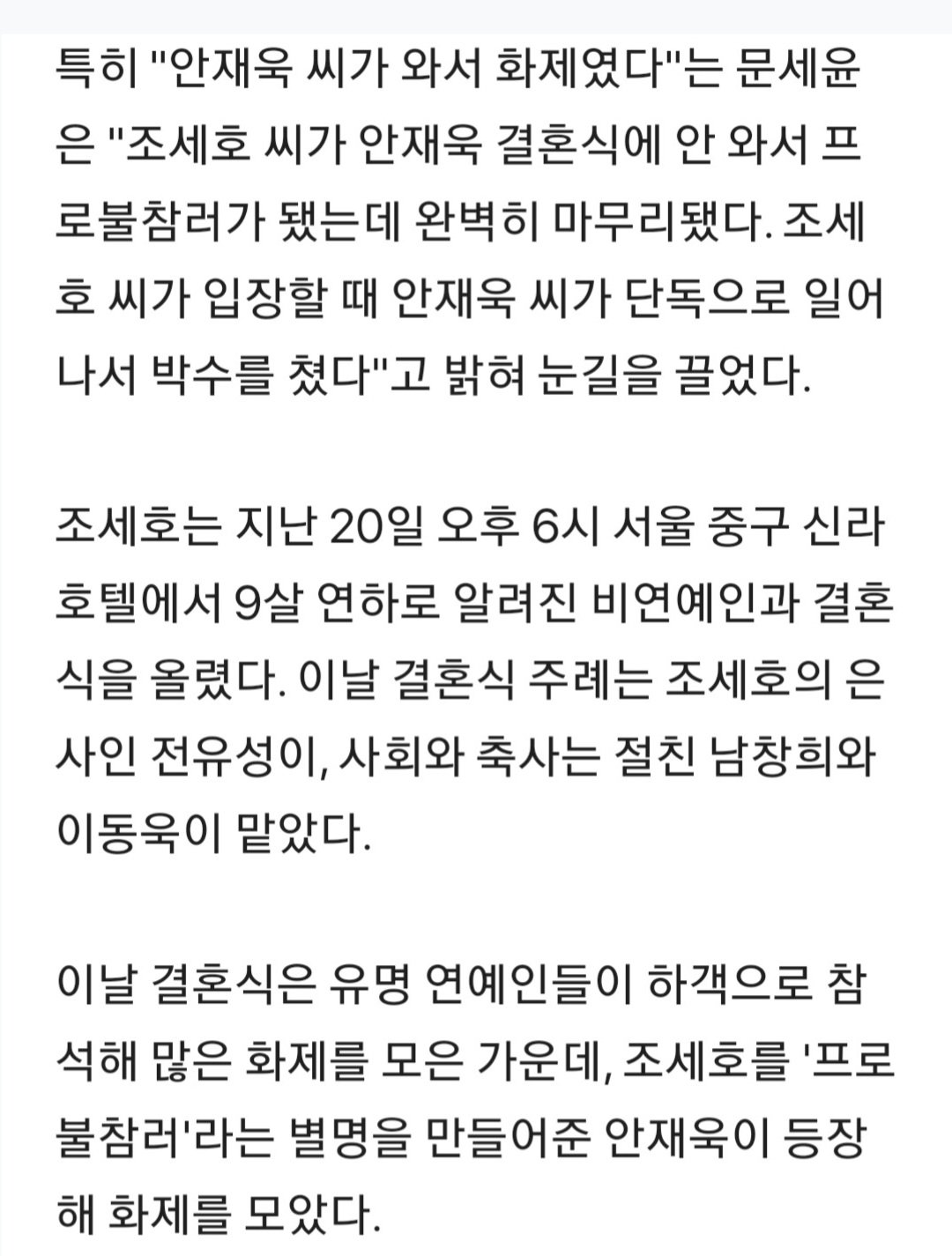 "안재욱, 조세호 신랑 입장때 단독 박수쳐"…프로불참러 논란 종결 [종합]