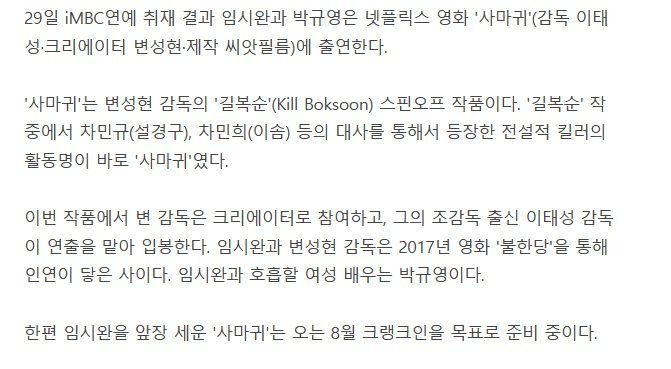 [단독] 임시완, '길복순' 스핀오프 '사마귀'로 킬러 변신