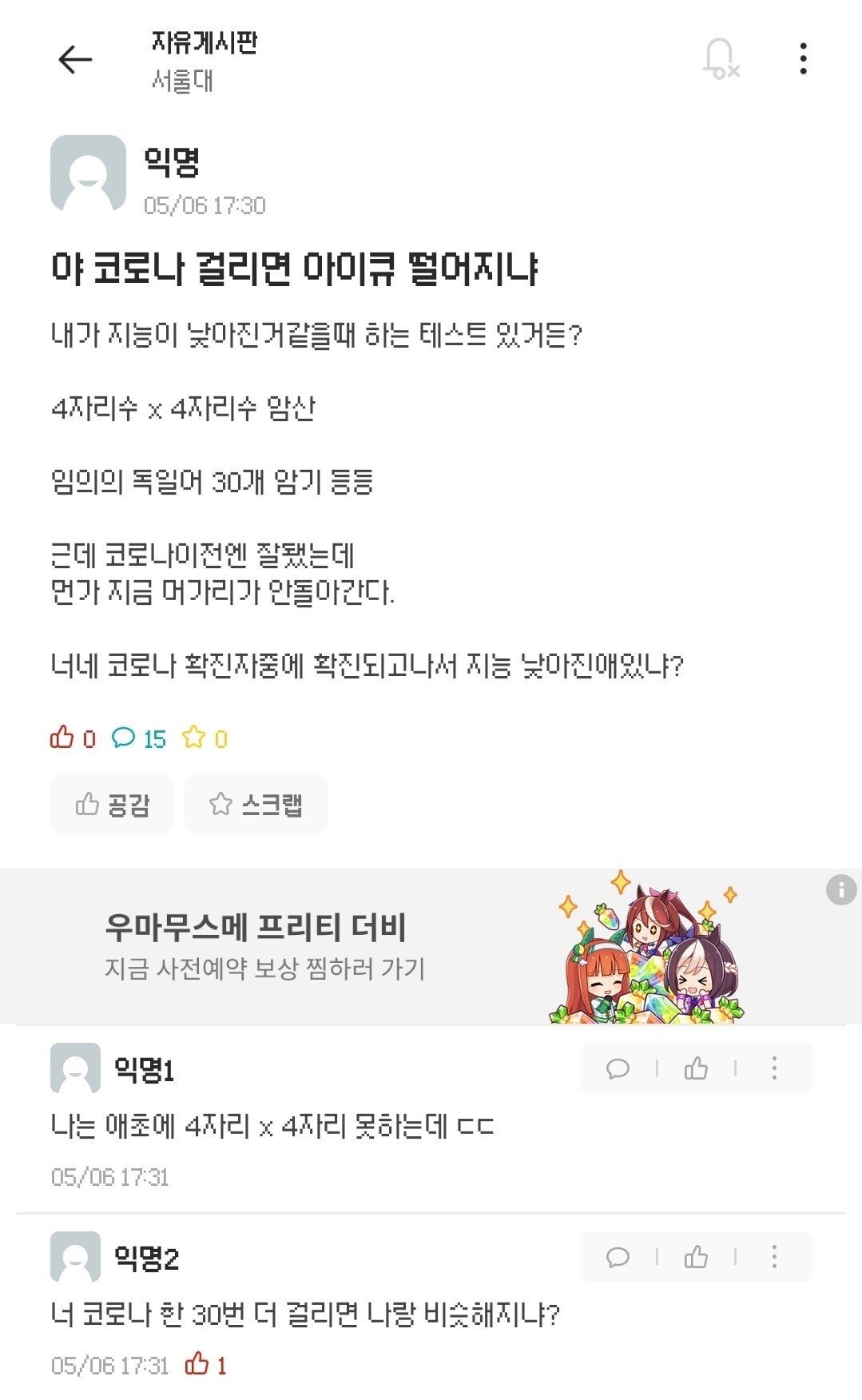 코로나에 걸려 바보가된 서울대생