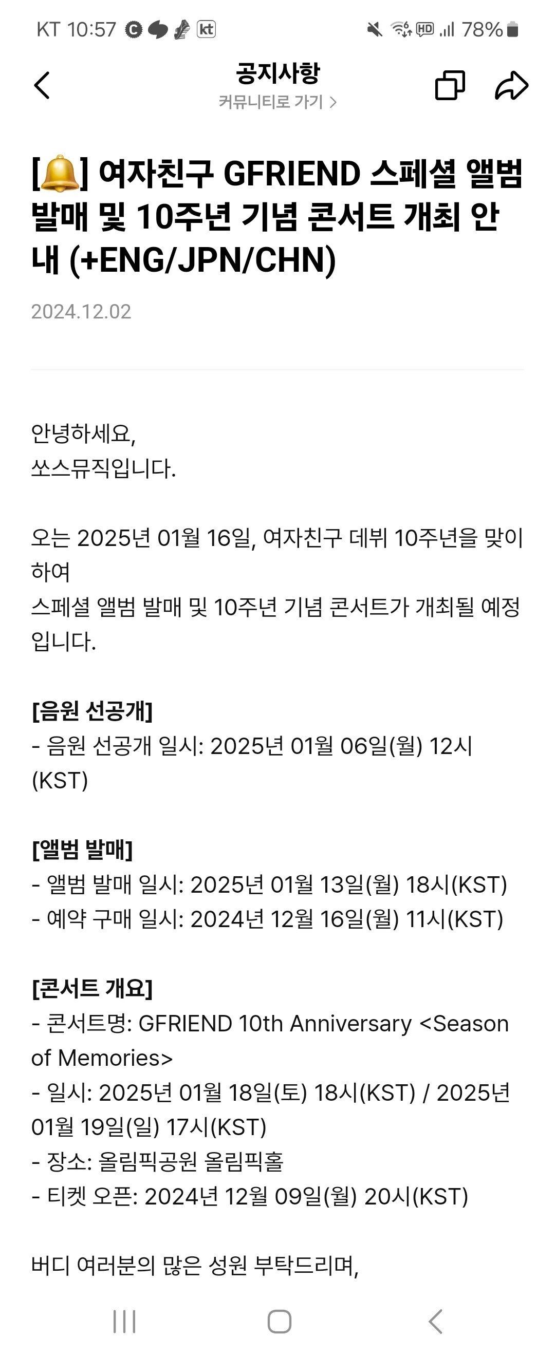 여자친구 10주년 스폐셜 앨범 공개 및 콘서트 개최