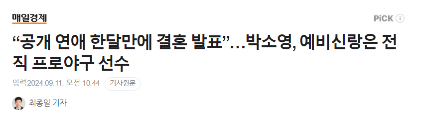 최근 공개 열애를 밝힌 희극인 박소영(37)과 전 야구선수 문경찬(32)이 올해 말 백년가약을 맺는다.