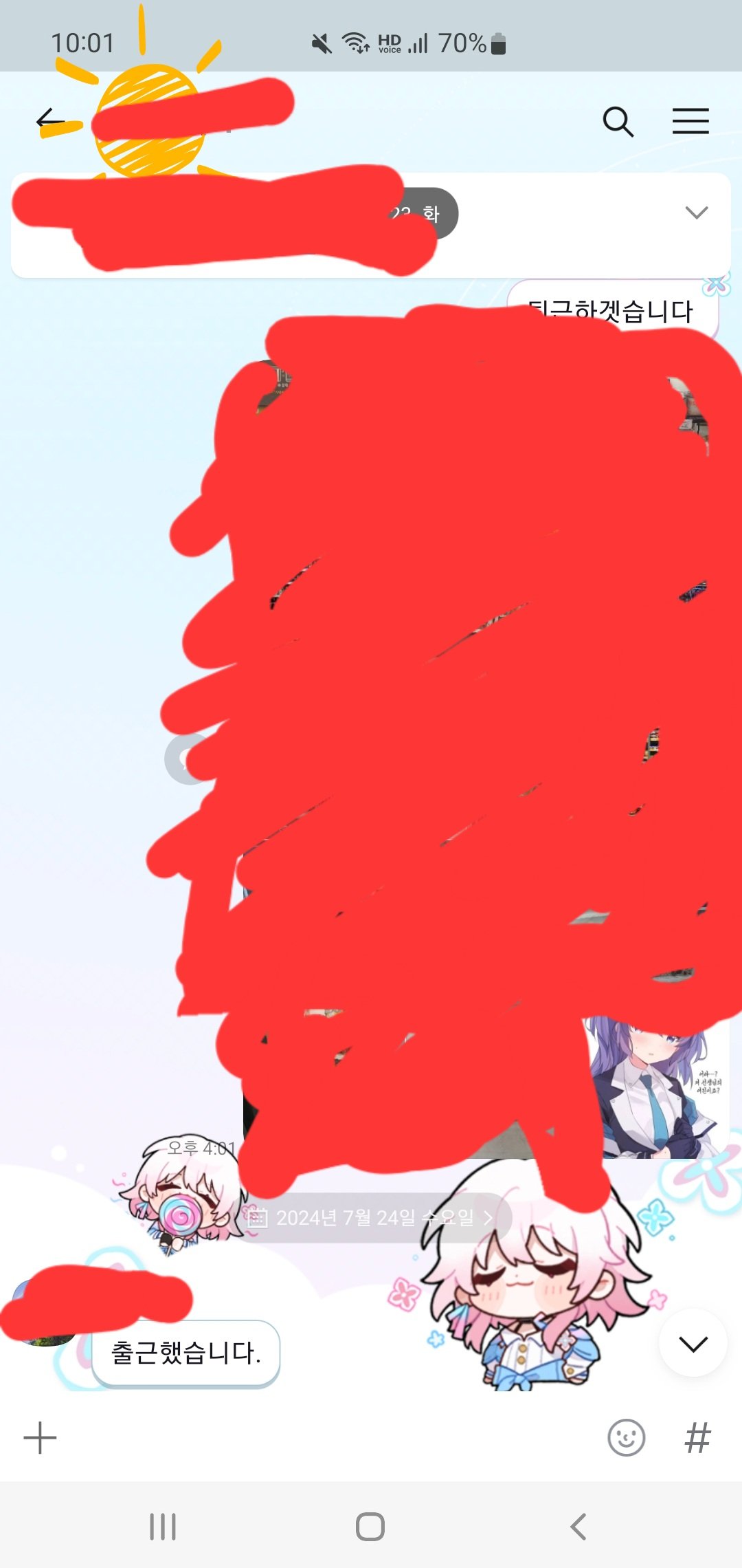 그젓께 출근하고 하루 쉬엇어서 전날 먼 일 읍엇나 단톡방 보고 잇엇음..