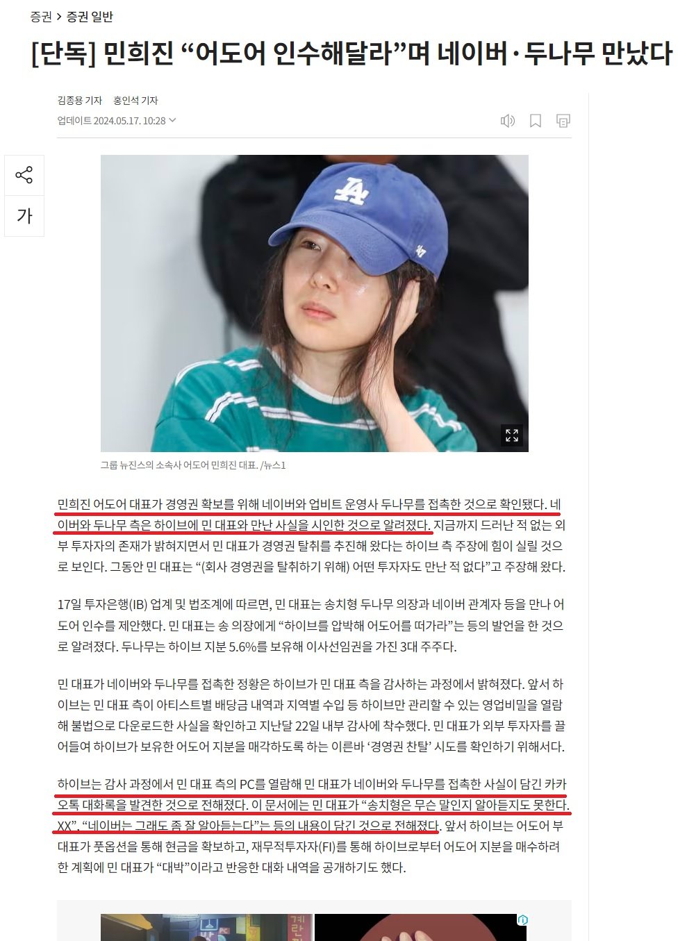 [단독] 네이버와 두나무 측 하이브에 민 대표와 만난 사실을 시인