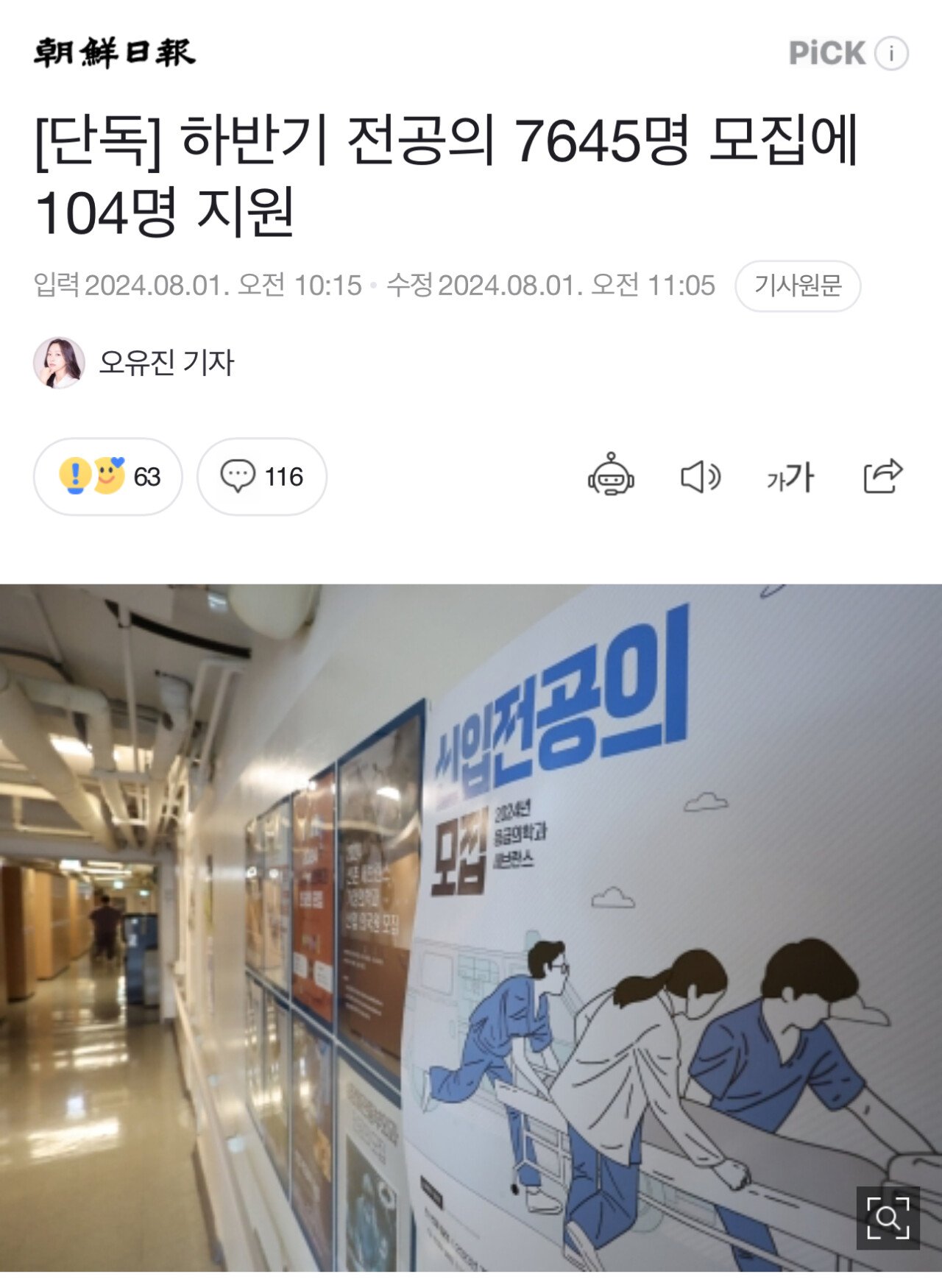 [단독] 하반기 전공의 7645명 모집에 104명 지원