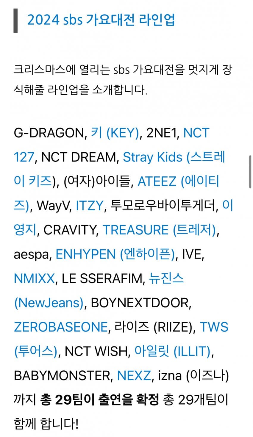잠시 후 SBS 가요대전 라인업 .jpg