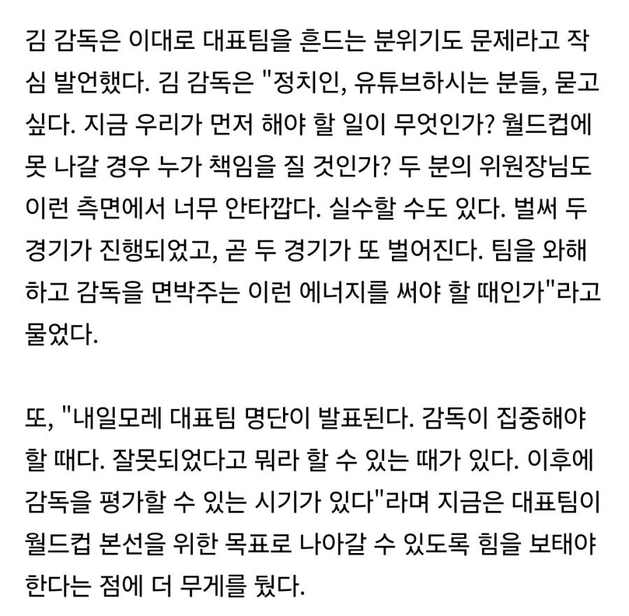 김판곤: 축튜버들 대표팀 그만 흔들어라