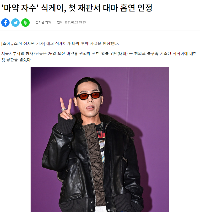 '마약 자수' 식케이, 첫 재판서 대마 흡연 인정