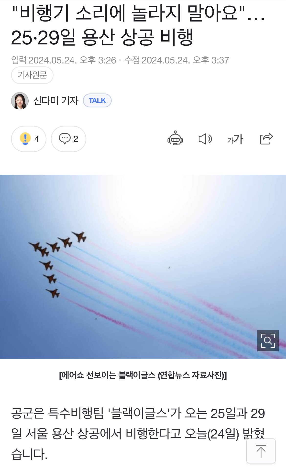 현재 용산에서 들리는 비행기소리