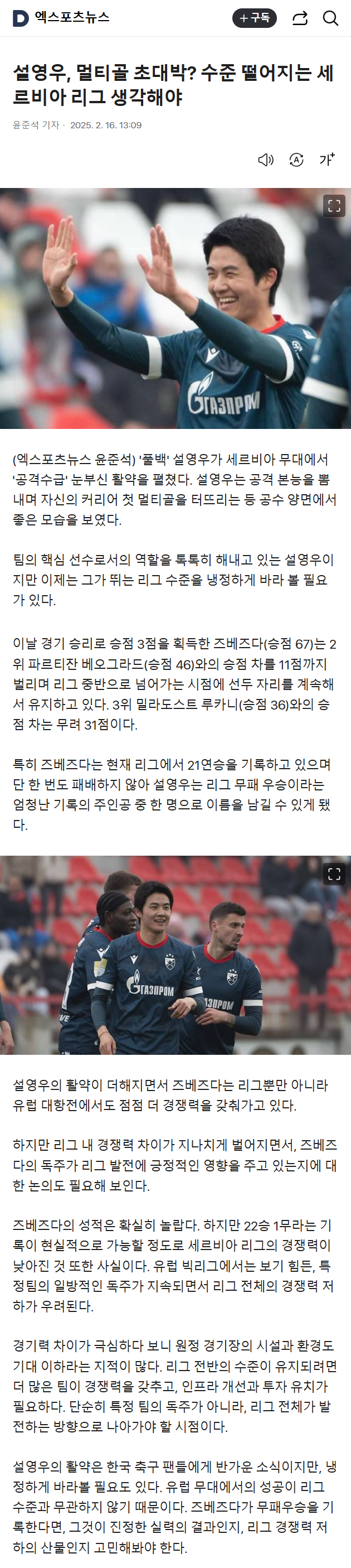 [기사] 설영우 멀티골 폄하하는 국내 스포츠 기자 ㅋㅋㅋㅋㅋㅋㅋㅋ