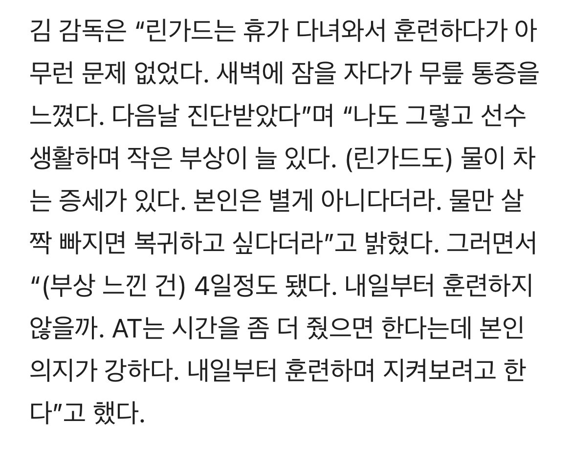 김기동 “린가드 무릎 통증으로 명단 제외”