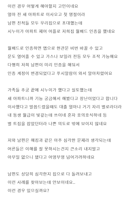 명절에 놀러와서 월패드 몰래 인증하다 걸린 시누이