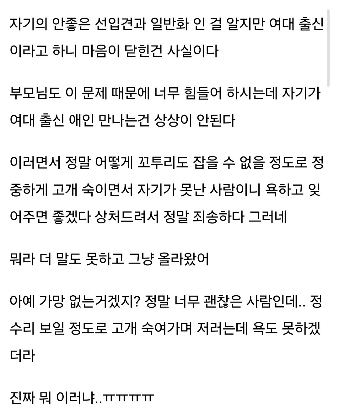 2. 여대출신인거 듣자마자 남자쪽에서 바로 잠수탐