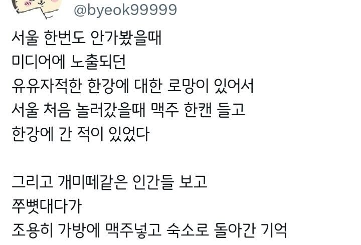 지방 사람이 겪은 한강에 대한 로망과 현실