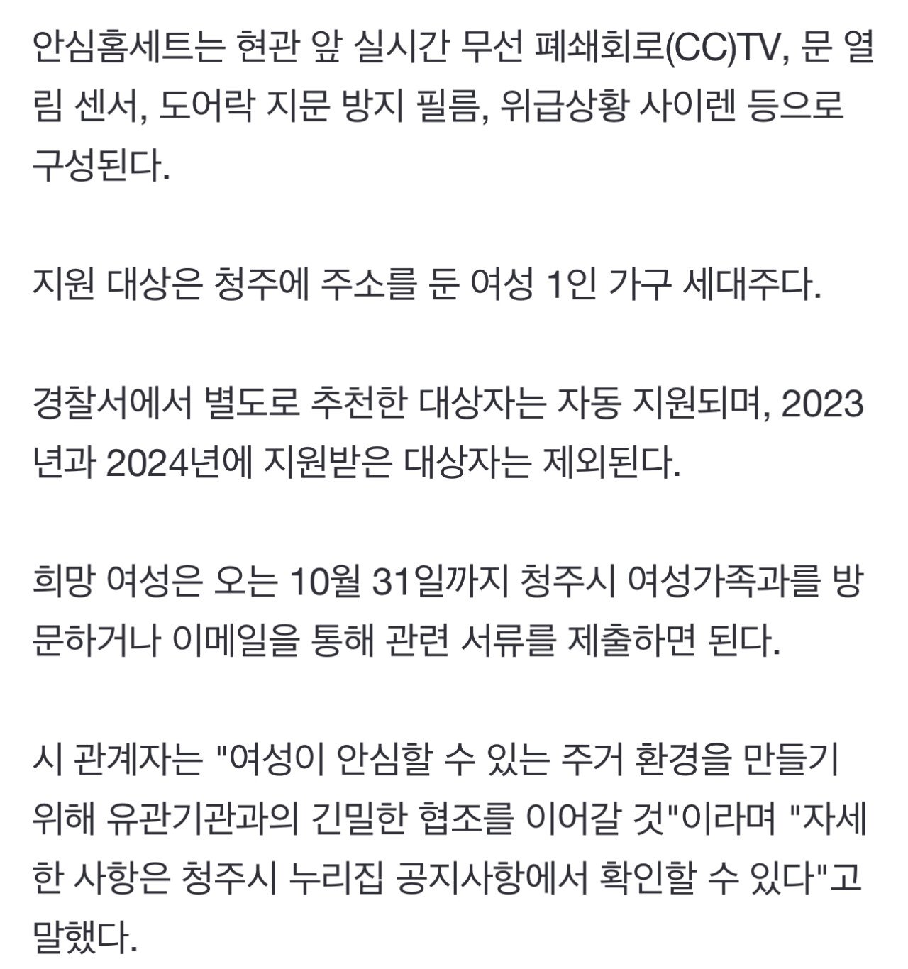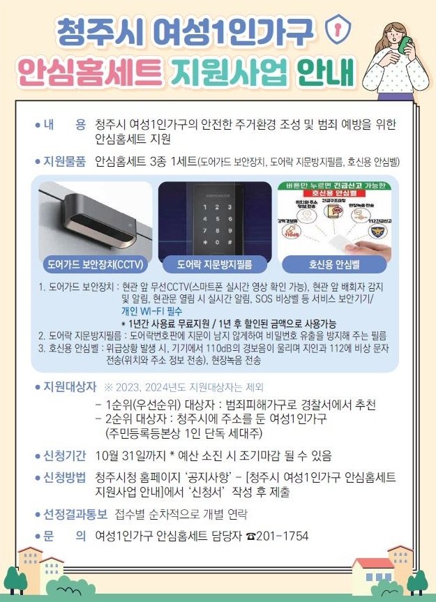청주시, 여성 1인가구에 무선CCTV 등 안심홈세트 무상지원