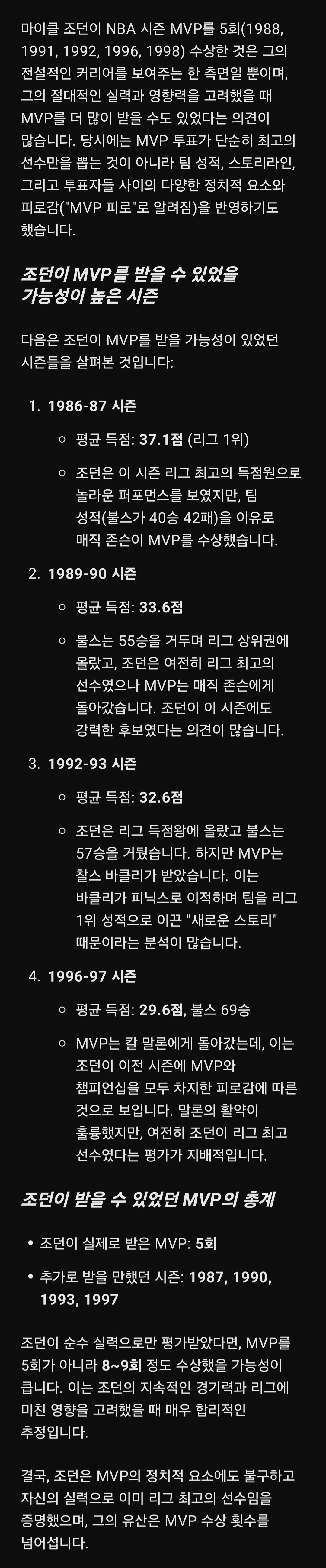 Chat GPT에게 마이클 조던이 받을 수 있었던 시즌 mvp 수를 물어보았다.
