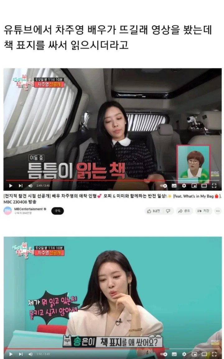 무슨 책 읽는지 들키기 싫어서 책표지 감싼 현명한 여배우