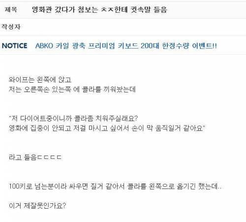영화관 갔다가 첨보는 ㅊㅈ한테 귓속말 들음
