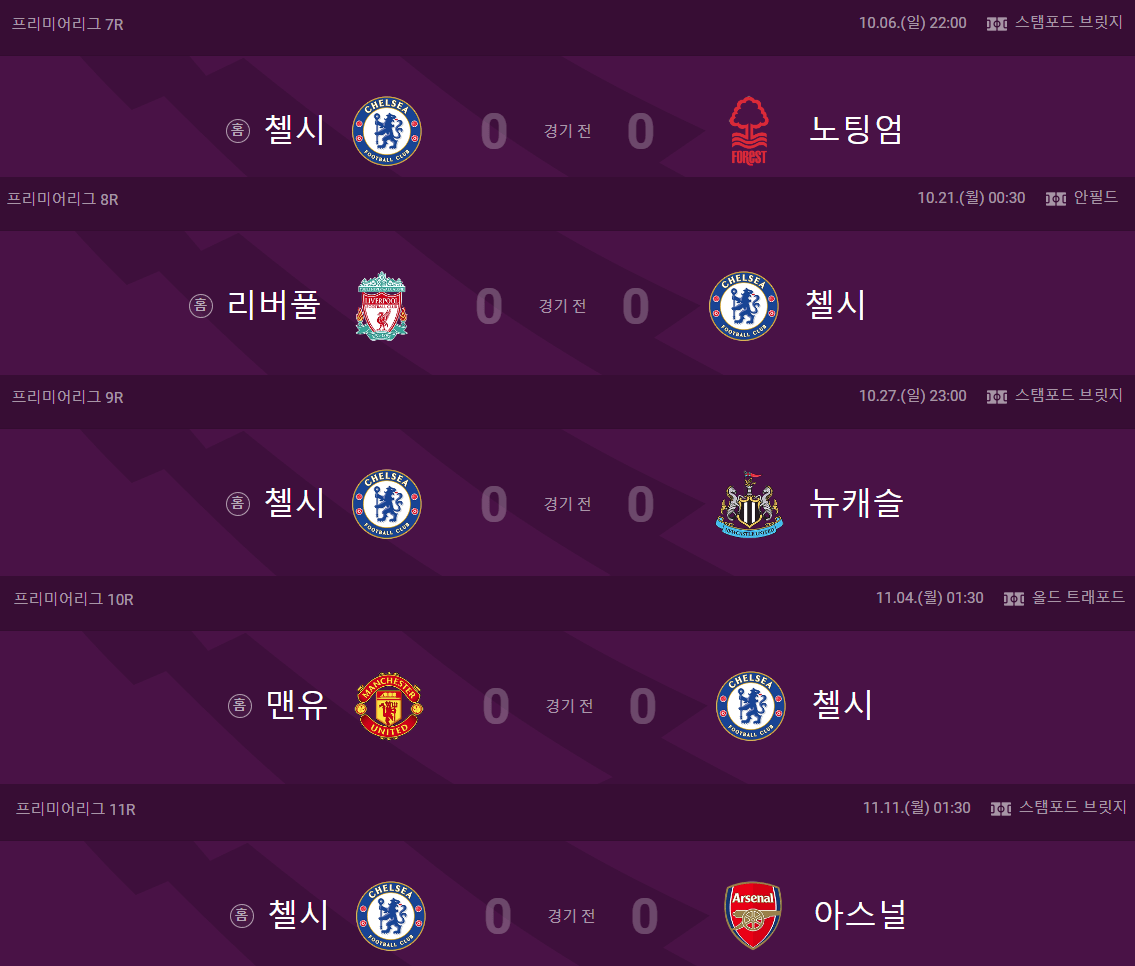 24-25 시즌 첼시의 순위를 가늠해볼수있는 살인적인 리그 일정